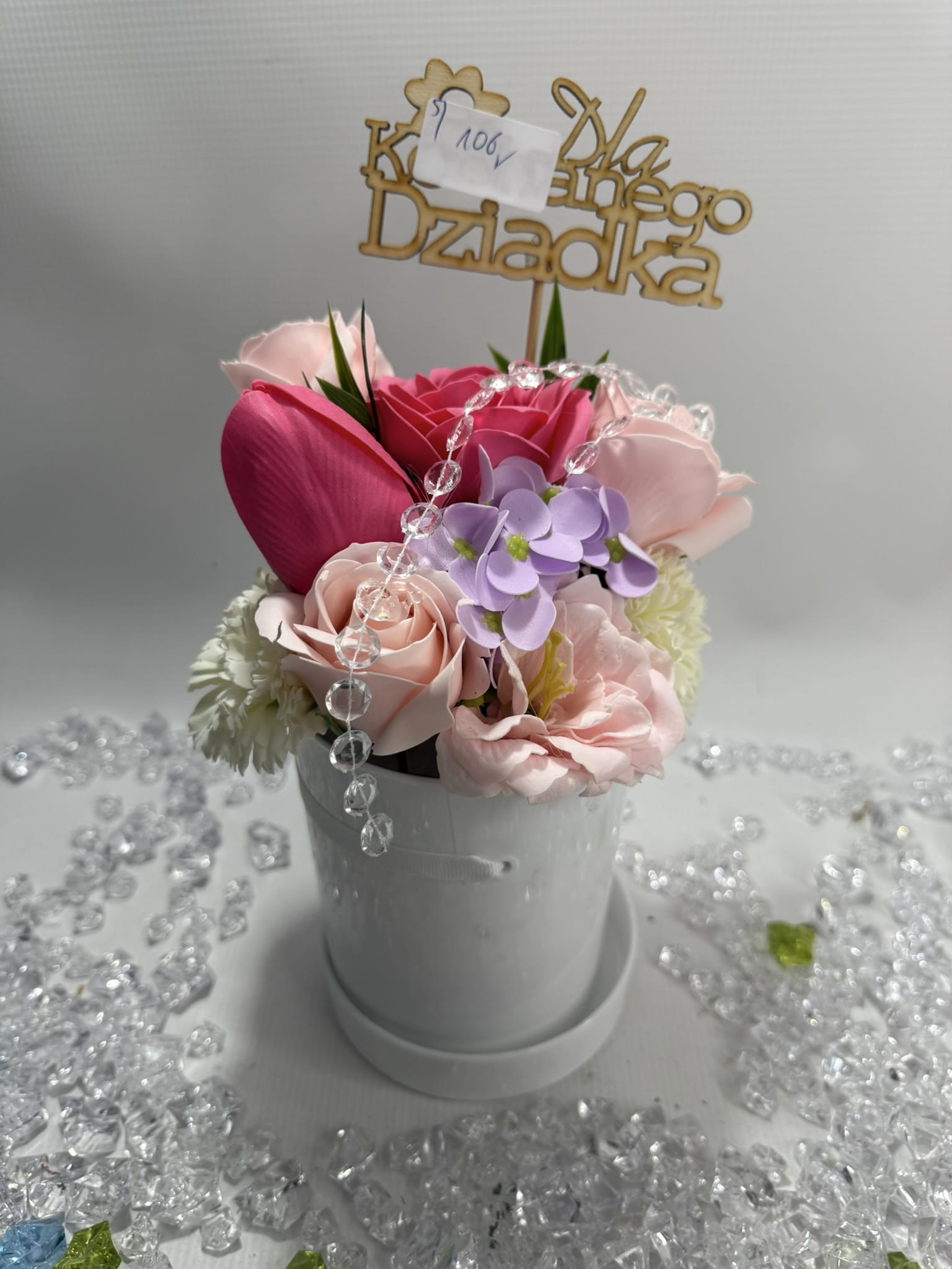 Kwiaty z mydła na Dzień Babci i Dziadka Podaruj Babci i Dziadkowi wyjątkowy prezent, który będzie cieszył oczy i serce każdego dnia! Nasze kwiaty z mydła to elegancka kompozycja, która nie tylko pięknie wygląda, ale również roztacza subtelny, przyjemny zapach. Te ręcznie wykonane bukiety są trwałe i bezobsługowe, dzięki czemu mogą ozdabiać dom przez długi czas, przypominając o Twojej pamięci i miłości. Idealne na Dzień Babci i Dziadka, kwiaty z mydła stanowią doskonałą alternatywę dla tradycyjnych bukietów. Podaruj im chwilę radości, wywołaj uśmiech i spraw, by poczuli się wyjątkowo!